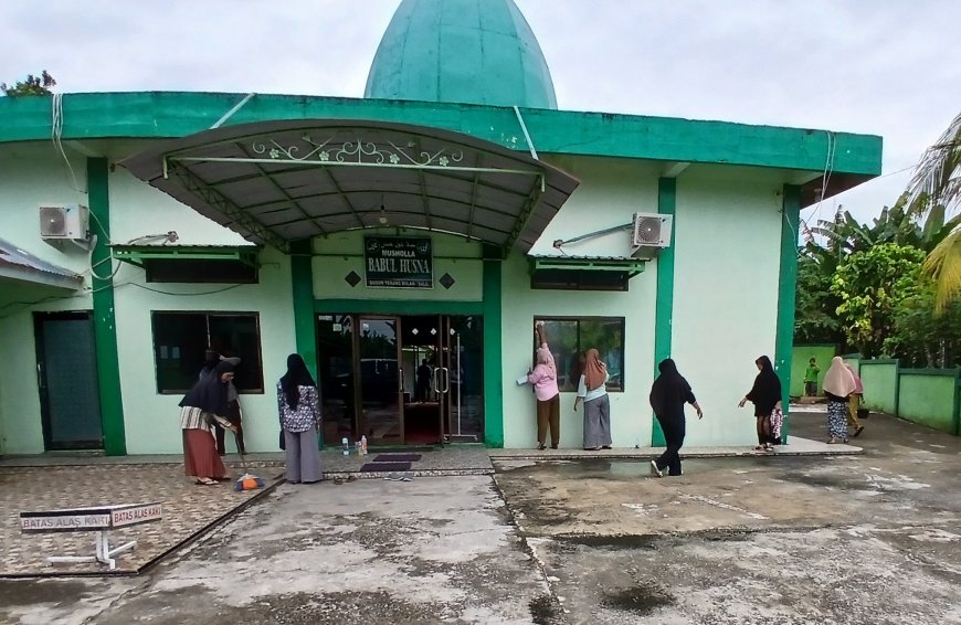 Hadir disana Sesepuh Musala Jusmaniar dan Warmiyanti serta Ketua Majelis Taklim Babul Husna Netty Mindrayani turut terlibat langsung membersihkan bagian dalam musala diikuti pengurus dan anggota jamaah lainnya.